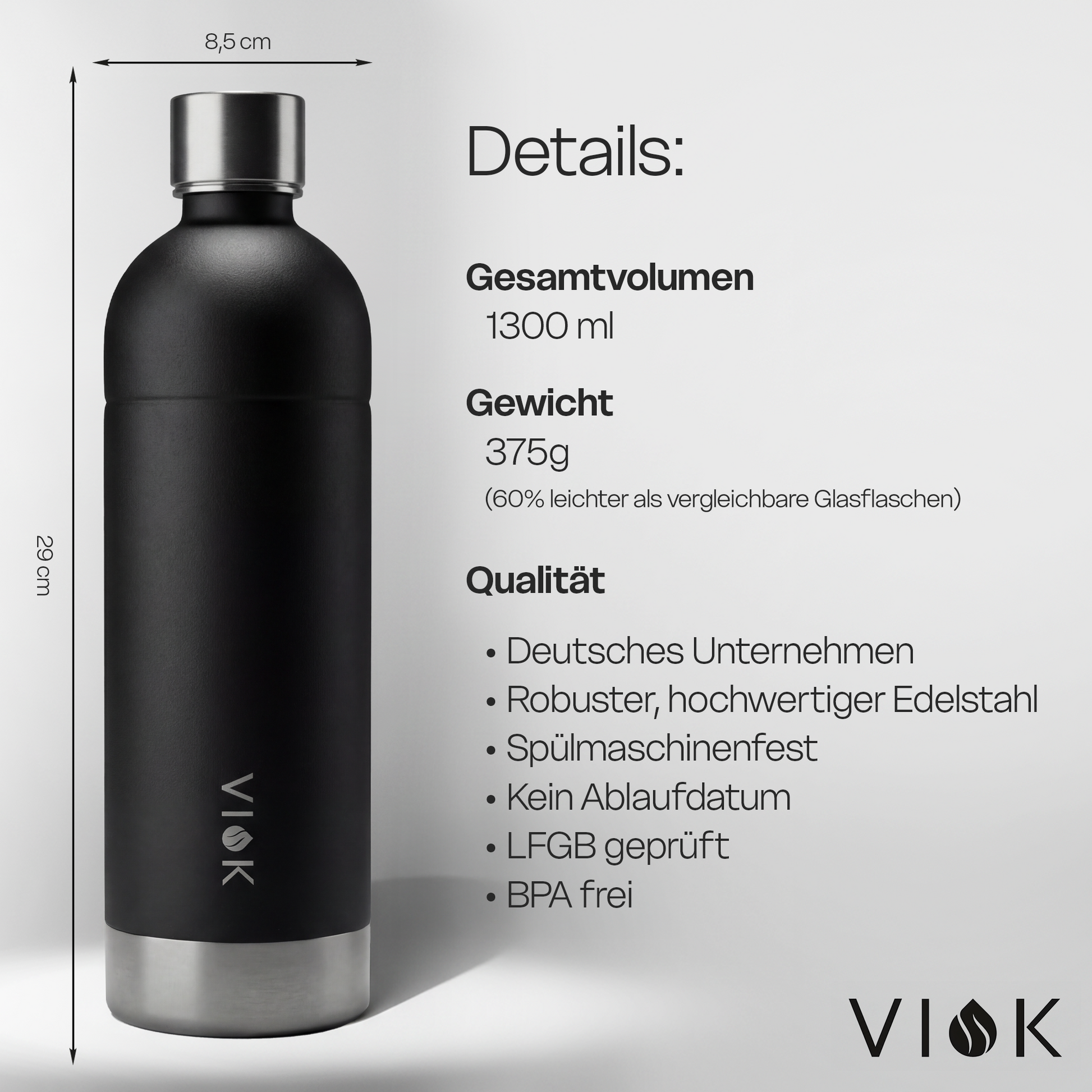 Ideal für alle, die Wert auf Sprudelgenuss, Qualität, Stil und Nachhaltigkeit legen – die VIOK Edelstahlflasche vereint Design, Funktionalität und Umweltbewusstsein in einem.
